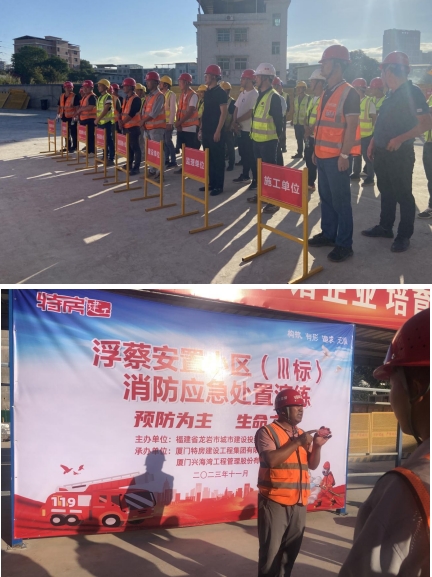 11月9日是第32個(gè)全國(guó)消防日為全面普及消防安全知識(shí),進(jìn)一步提高在建項(xiàng)目管理人員及現(xiàn)場(chǎng)工人的消防安全識(shí)自防自救的處置能力,預(yù)防和減少火災(zāi)事故的發(fā)生當(dāng)天,市政集團(tuán)以“11·9”消防宣傳日為契機(jī),深入浮蔡安置小區(qū)Ⅲ標(biāo)項(xiàng)目開展11·9”消防安全宣傳日活動(dòng)圍繞主題開展了消防應(yīng)急處置演練活動(dòng),公司副總經(jīng)理修海金、質(zhì)安部及施工、監(jiān)理單位共計(jì)五十余人參加活動(dòng)。