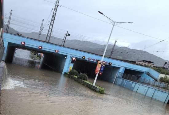 經(jīng)過現(xiàn)場察看,由于短時間降雨量太大,龍津河水位暴漲高于通道出口頂標高,河水倒灌至下穿通道導致交通中斷下穿通道水泵房三臺水泵全部啟動抽水也無法滿足排水要求。公司防汛小組到達現(xiàn)場后,連夜組織人員拉好警戒線,設置警示標志,防止車輛進入下穿通道,并調(diào)度4輛應急車輛及時排水并清洗路面;同時,提前與鐵路部門、交警部門聯(lián)系,暫時封閉該段線路。經(jīng)過6小時的不斷抽水,路面已基本暢通,搶險過程未發(fā)生任何險情和人員傷亡。