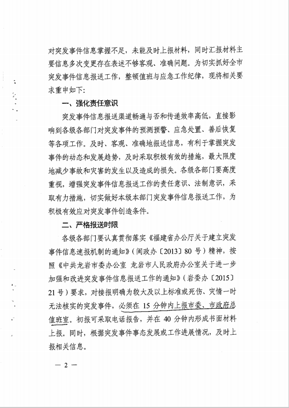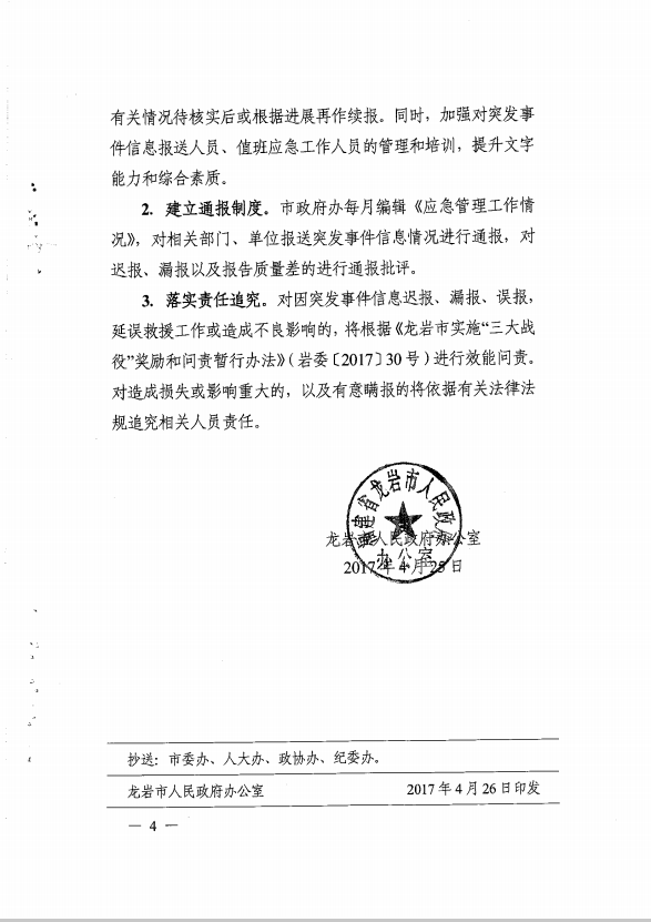 市政府辦關于切實抓好突發事件信息報送工作的通知(龍政辦【2017】100號)