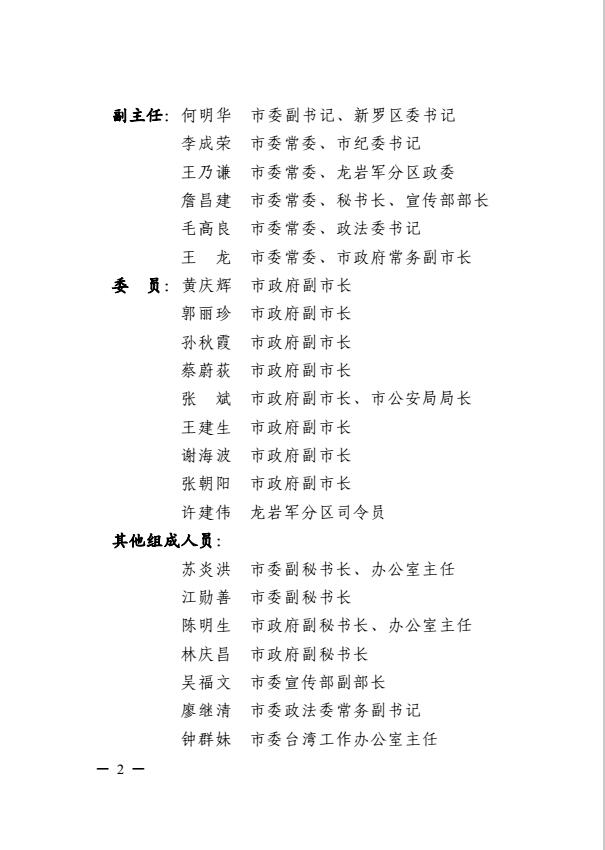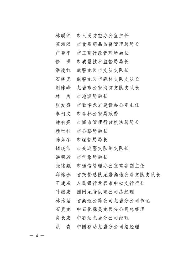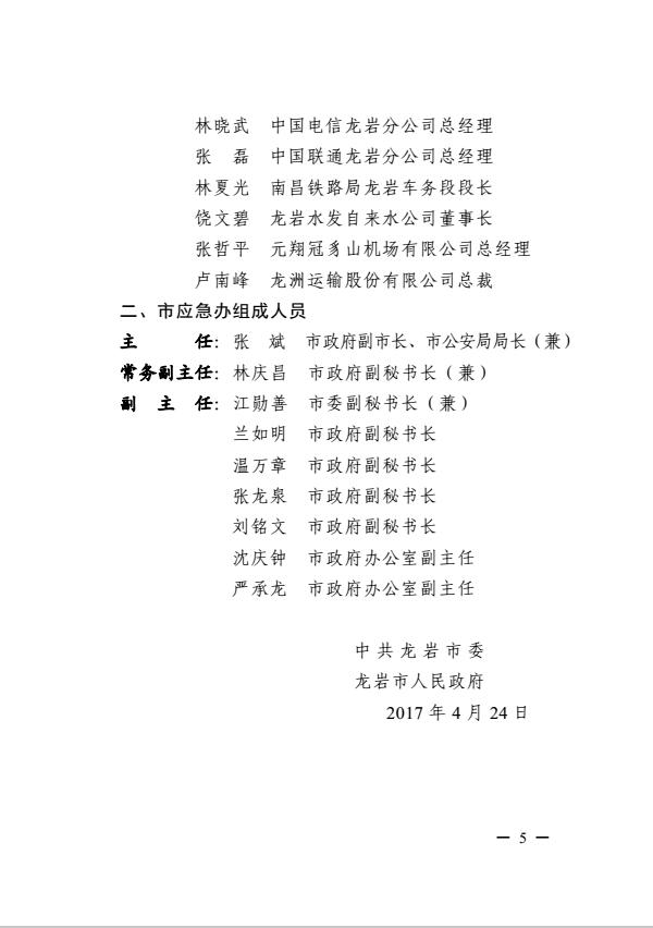 市委關于調整龍巖市突發事件應急委員會及龍巖市突發事件應急委員會辦公室成員的通知(巖委【2017】40號)
