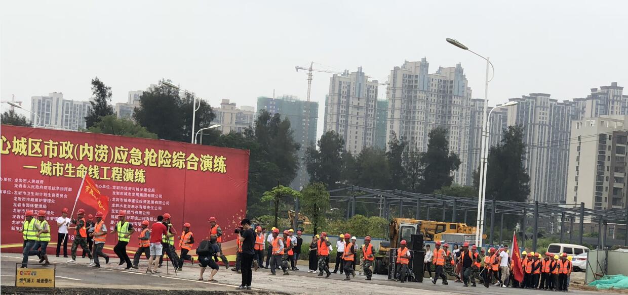 龍巖大道與工業路交叉口立交工程開展市政(內澇)應急搶險綜合演練