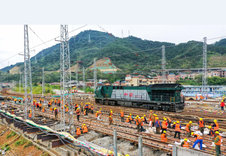 近日,新羅區城東片區東外環下穿漳龍、南龍鐵路框涵工程正式開工。施工現場,工人們正在對路基縱橫梁進行加固,而在施工的過程中,營運列車也正常通行。